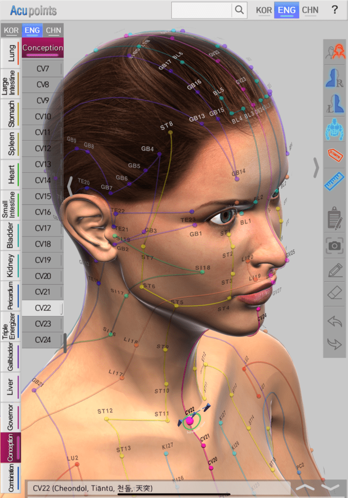 Visualisez une lumière dorée nettoyant les énergies lourdes sur les acupoints du visage .